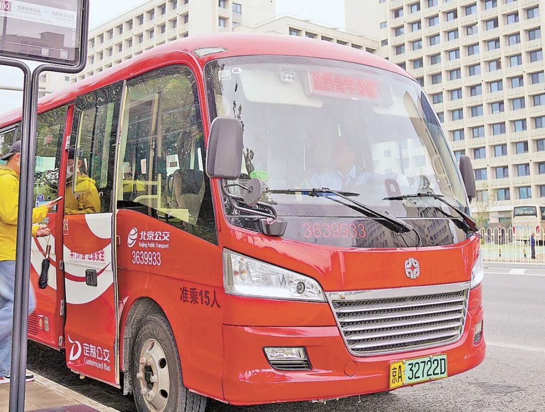早上7点半,北京丰台区中铁建悦居青年公寓小区门口,一辆车身鲜红、造型圆润的小型巴士缓缓停靠。“从小区到地铁张郭庄站,3公里左右的距离,一站直达。”上班族小张边扫码上车边说。